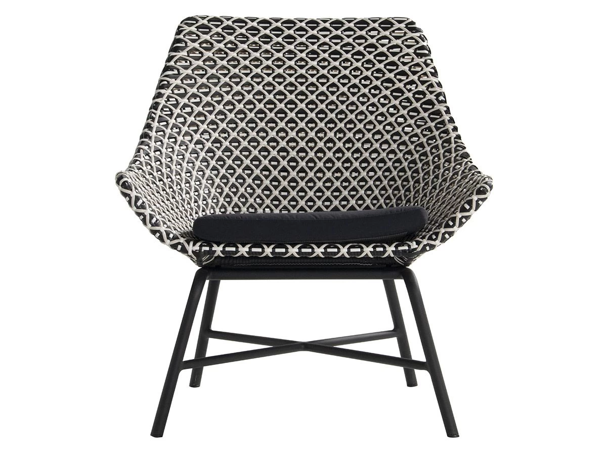 De Delphine heeft een strak design en past daardoor perfect in een moderne tuin. Voor extra comfort is er een zwart zitkussen toegevoegd. De zithoogte van de stoel is slechts 39 cm.