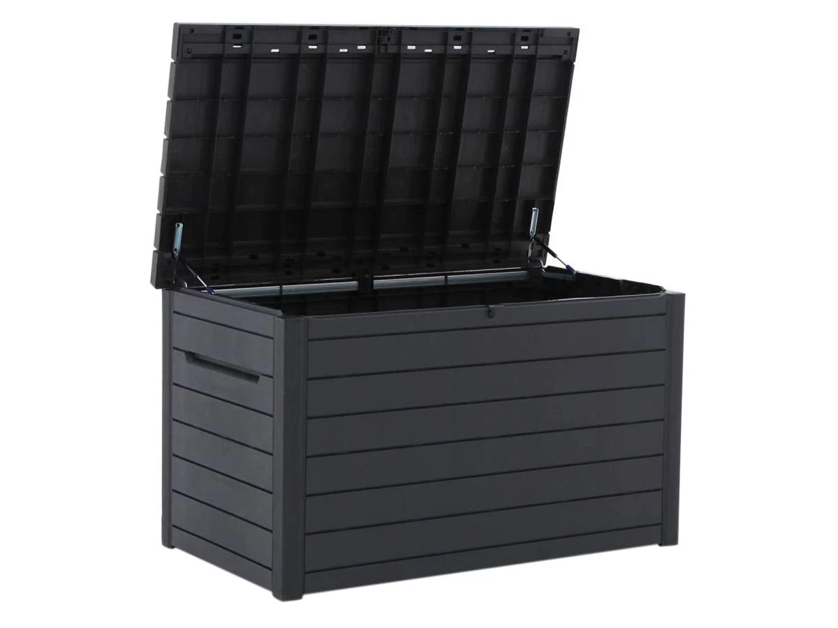 Deze opbergbox heeft een inhoud van 870 liter en is strak vormgegeven. En deze grote box is niet alleen handig om al je tuinartikelen in op te bergen, maar je kunt hem ook gebruiken als extra zitplek. Dankzij de verstevigde deksel kunnen hier gerust 2 volwassenen op zitten.