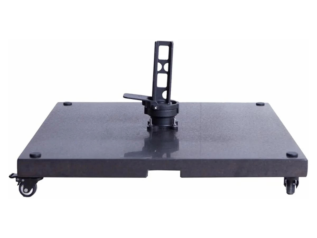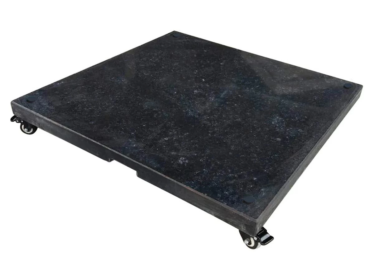 De Madison Monaco verrijdbare parasolvoet heeft een afmeting van 80 x 80 x 5 cm en weegt ongeveer 90 kg. De afstand tussen de schroefgaten is ongeveer 7,5 cm. Hiermee past de voet perfect onder de Madison Monaco of de Saint Tropez parasol. De parasolvoet wordt geleverd in de kleur antraciet en is inclusief 4 wielen.