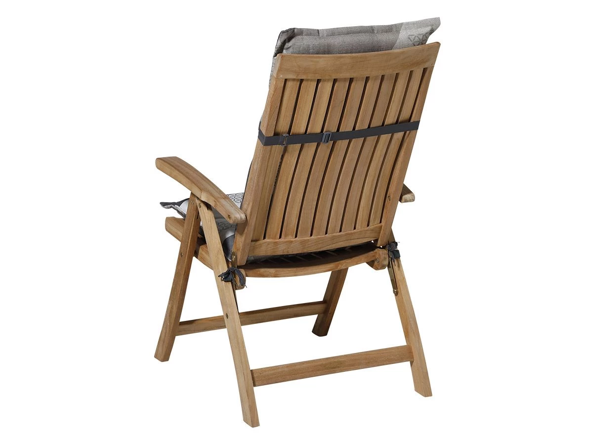 Dit kussen is geschikt voor in een kunststof of houten tuinstoel. De zitting en de rugleuning van deze stoelen vormen niet mee naar je lichaam waardoor dit soort tuinstoelen veel comfortabeler zitten met een goed kussen erin. Dit kussen heeft een universele maat van 123 x 50 cm zodat hij in de meeste tuinstoelen past. Je kunt het kussen vast zetten aan de stoel door middel van touwtjes aan de zijkant en de band aan de achterkant.