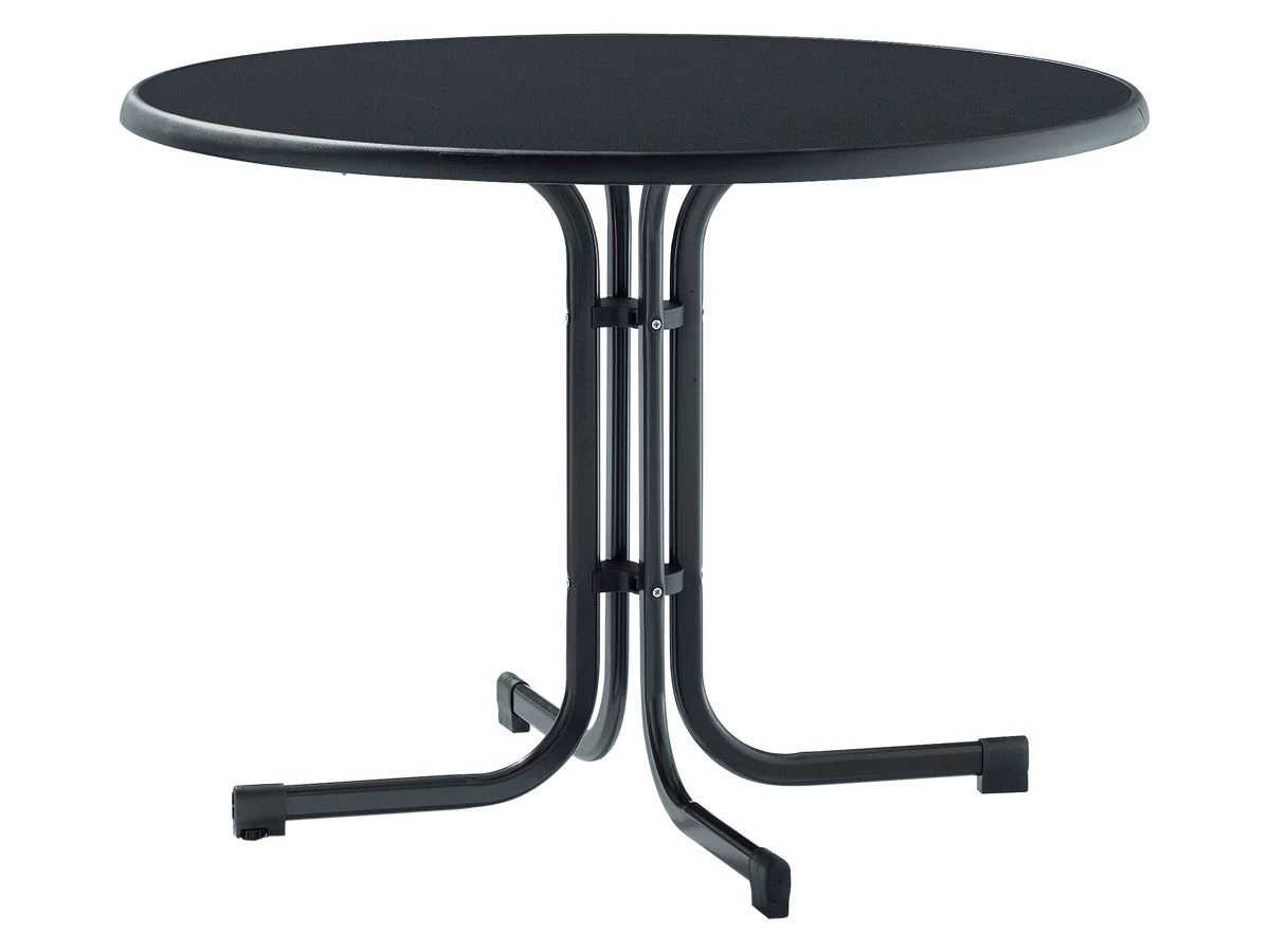 Het tafelblad is gemaakt van mecalit®-PRO, dit materiaal is 100% weerbestendig, schroeibestendig, zuurbestendig en kleurvast. Deze tafel kan dus prima het hele jaar door buiten blijven staan. Wil je de tafel toch opbergen? Dan kun je de tafel eenvoudig inklappen tot een plat pakket.
