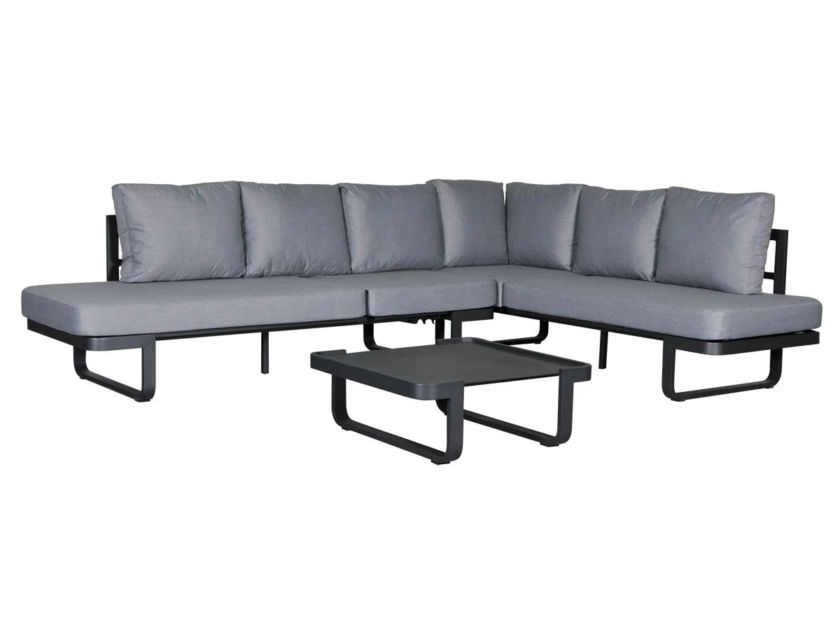 De Modo biedt als loungeset plek aan vijf personen en is voorzien van een bijpassende salontafel.