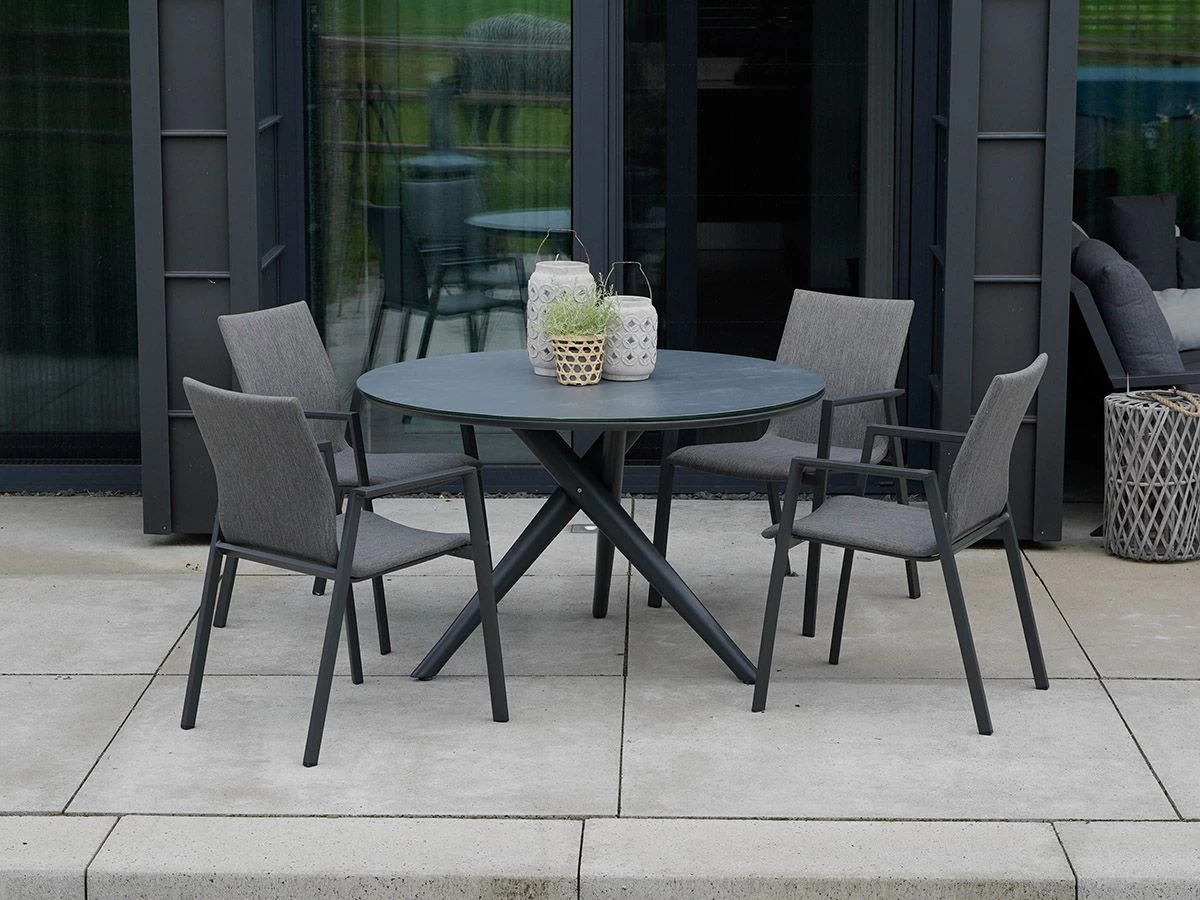 Wil je graag een ronde tuintafel met een uniek onderstel? Dan is de Salamanca ronde tuintafel een goede optie! Deze tuintafel is voorzien van een fraai ster-vormig aluminium onderstel met daarop een rond tafelblad. Zo heeft de tafel een unieke uitstraling en biedt hij ruimte voor 5 stoelen.