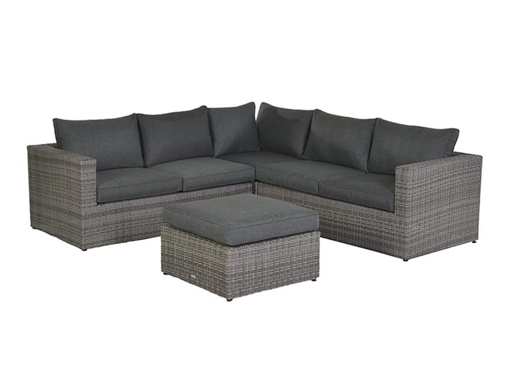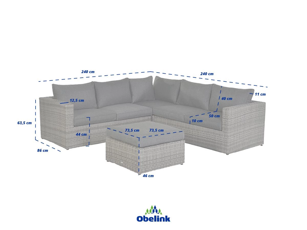 De Orangebird bestaat uit een 3-delige hoekbank, met een hocker. Combineer de hocker met een dienblad en je kunt hem ook als tafel gebruiken. De hoekbank heeft een afmeting van 240 x 240 cm. De kussenhoezen zijn voorzien van een rits waardoor ze gemakkelijk met de hand te wassen zijn. Het aluminium frame en het kunststof wicker is volledig weerbestendig. Bescherm de set met een hoes voor een extra lange levensduur.