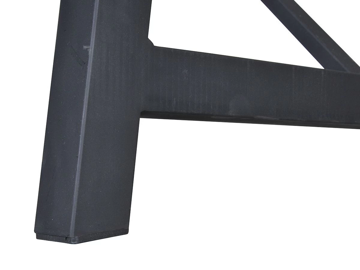 Deze tuintafel heeft een afmeting van 220 x 100 x 75 centimeter en is voorzien van een gepoedercoat stalen frame.