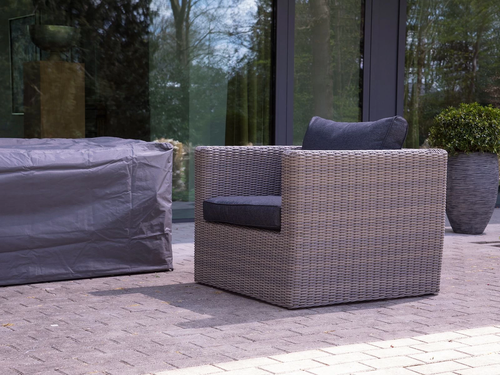 De Winza loungestoelhoes Deluxe heeft een afmeting van 95 x 95 x 70 cm en past over een tuinstoel. Met deze hoes bescherm je je tuinstoel tegen allerlei weersomstandigheden. De hoes is gemaakt van hoogwaardig polypropyleen met een waterdichte coating en afgeplakte naden voor een optimale waterdichtheid.